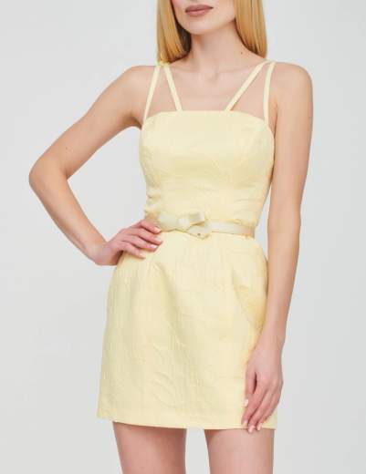 Abito in jacquard floreale con cintura.Abito in jacquard. Il vestito ha doppie spalline e gonna mini. I fiocchi decorano le bretelle e la cintura coordinata. Focus sulla texture: gli eleganti motivi floreali in rilievo coprono tutta la lunghezza e regalano movimenti ipnotici. Vestibilità regular.