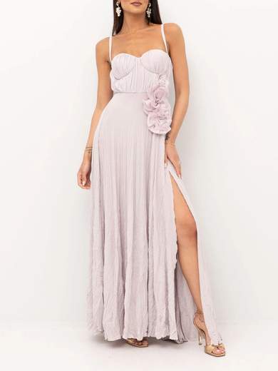 Abito Red Carpet in jersey lurex con fiore ricamato.Abito da sera in jersey lurex. Il vestito ha spalline sottili con coppe sul busto e si distingue per l'elegante applicazione floreale ricamata su un fianco. La gonna ha spacco laterale ed è ravvivata dalla particolare texture stropicciata al fondo con effetto foliage. Vestibilità slim. Leggi tutto