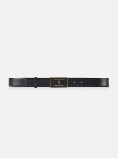 Cintura in pelle con placca logo.Cintura in pelle dalla texture liscia e con design essenziale. L'accessorio è arricchito dalla placca centrale con sottili profili in metallo dorato, a incorniciare il dettaglio con logo.