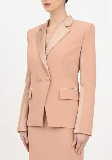 Giacca in crêpe con rever in raso.Giacca monopetto in crêpe leggero con tasche a filetto. Il blazer si distingue per i rever a lancia in raso lucido che creano luminosi contrasti. Chiusura con bottone in raso impreziosito dal logo in metallo dorato.