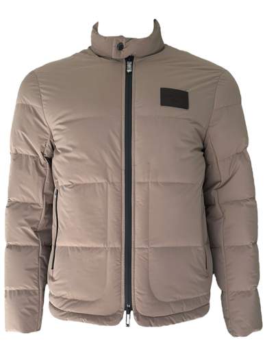 Piumino con zip di chiusura e automatico sul collo, realizzato in nylon spandex. L'avvolgenza dell'imbottitura in vera piuma è esaltata dalla lavorazione trapuntata, mentre il patch con logo impresso dal finish bottalato completa con distinzione il capo.Tessuto: 90% poliammide, 10% elastan; spalmatura interna: 100% poliuretano termoplastico; imbottitura: 90% piumino d'anatra bianca, 10% piuma d'anatra bianca; fodera: 90% poliammide, 10% elastan; etichetta pelle: 100% pelle
