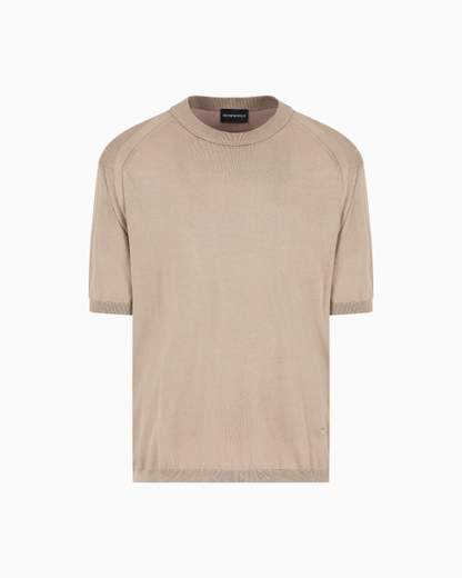 Maglia girocollo a maniche corte realizzata in una particolare trama molto leggera e morbida misto cotone, seta e lyocell.DETTAGLI PRODOTTO