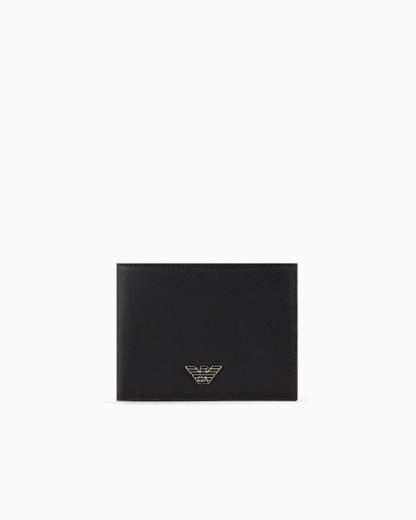 Portafoglio in pelle rigenerata di materiale riciclato certificato, con numerose tasche portacarte, vano per le banconote e tasca portamonete che lo rendono comodo e indispensabile per la vita di tutti i giorni. Ogni prodotto realizzato in pelle rigenerata è il frutto di un processo ecosostenibile che sfrutta il riutilizzo delle rimanenze delle pelli, lavorate e assemblate in totale assenza di colla e con attenzione al risparmio idrico.La riduzione di spreco di risorse contribuisce a renderlo un materiale eco-compatibile a basso impatto ambientale che mantiene però le stesse qualità, alla vista e al tatto, della pelle vera. Una collezione di accessori nata per soddisfare l'esigenza dell'uomo Emporio Armani che richiede una perfetta coesione tra stile e workwear, grazie ad un design essenziale e di charme caratterizzato da un finish stampa saffiano e personalizzato dal logo aquila sagomato e traforato in metallo.Dimensioni: 12,5 x 9,5 x 2,5 cm