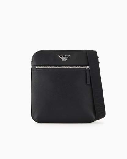 Borsa a tracolla piatta in pelle rigenerata di materiale riciclato certificato, perfetta per accompagnarti durante gli impegni quotidiani. Presenta tasca esterna e chiusura con zip. Ogni prodotto realizzato in pelle rigenerata è il frutto di un processo ecosostenibile che sfrutta il riutilizzo delle rimanenze delle pelli, lavorate e assemblate in totale assenza di colla e con attenzione al risparmio idrico.La riduzione di spreco di risorse contribuisce a renderlo un materiale eco-compatibile a basso impatto ambientale che mantiene però le stesse qualità, alla vista e al tatto, della pelle vera. Una collezione di accessori nata per soddisfare l'esigenza dell'uomo Emporio Armani che richiede una perfetta coesione tra stile e workwear, grazie ad un design essenziale e di charme caratterizzato da un finish stampa saffiano e personalizzato dal logo aquila sagomato e traforato in metallo.
