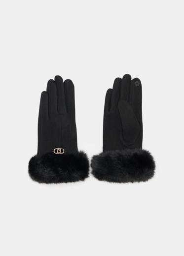 Guanti con dettagli in pelliccia sintetica.Guanti con logo monogram, Dettaglio in pelliccia sintetica.