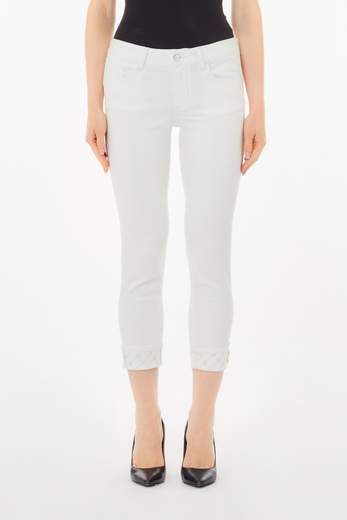 Pantaloni bianchi cropped con risvolto.Realizzati in drill di cotone, Tagli bottom up, Risvolto sul fondo, Vita media, Gamba skinny al polpaccio, Logo monogram. Leggi tutto