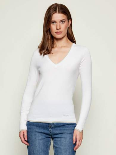 Maglia con scollo a V.Maglia da donna in misto viscosa, Scollo a V, Interventi in lurex®, Spacchetti sui polsi, Prodotto "Liu Jo Better".