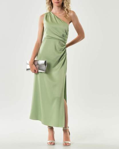 Ready for the party? Con l'abito monospalla in satin il tuo stile è assicurato: il taglio in vita e il gioco di arricci laterale esaltano la silhouette e aggiungono sensualità.Abito in satin tecnico, Fit regolare, Bustino monospalla foderato con zip sul fianco sinistro, Taglio in vita e gonna dritta, Spacco sul fianco sinistro.