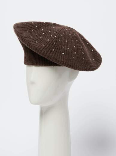 Basco in maglia di misto lana • Motivo di strass applicati • Bordo lavorato a costine.Composizione: 50% Lana, 50% Poliammide