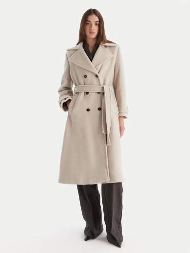 Cappotto in beaver double soft con fodera interna, Fit dritto, Scollo con rever, Chiusura doppiopetto con bottoni a vista e cintura, Alamari ai polsi e tasche con filettone, Spacco centrale posteriore.