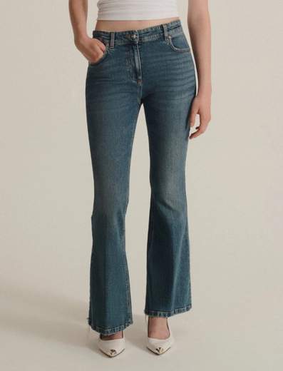 Jeans bootcut in denim stretch.Versatili e cool, i jeans bootcut slanciano la silhouette e si prestano ad abbinamenti creativi. Dall'intramontabile t-shirt, fino al top con paillette per le night out tra amici.