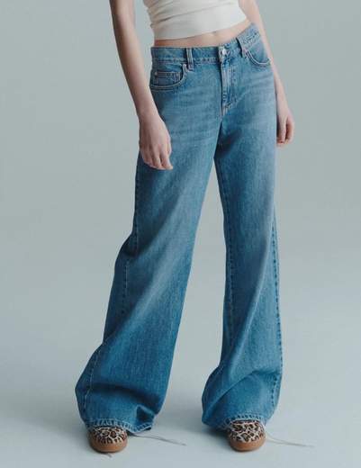 Jeans wide leg a vita bassa .Mood urbano, con una nota raffinata: nuovo denim wide leg con vita bassa, dalla classica costruzione a cinque tasche. Immancabile nel guardaroba metropolitano, perfetto in ogni occasione.