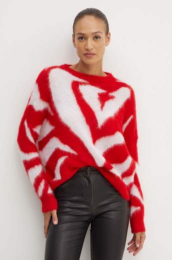 Immergiti in una soffice nuvola: la maglia in mohair calda e ampia, arricchita dall'intarsio fantasia, ha tutte le carte in regola per guadagnarsi un posto d'onore nel tuo guardaroba daytime.