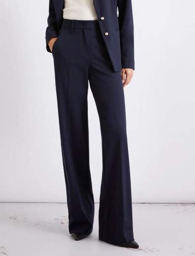 Pantalone in jersey di misto viscosa stretch lavorato con punto Milano, Fit aderente, Chiusura con bottone nascosto, Tasche laterali alla francese e posteriori a filetto, Piega stirata fronte e retro.