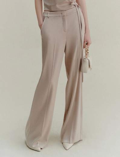 Pantalone in satin di triacetato, Fit ampio, Vita alta con chiusura con gancio e zip nascosta, Gamba ampia con stiratura centrale, Tasche laterali alla francese e posteriori a filetto.