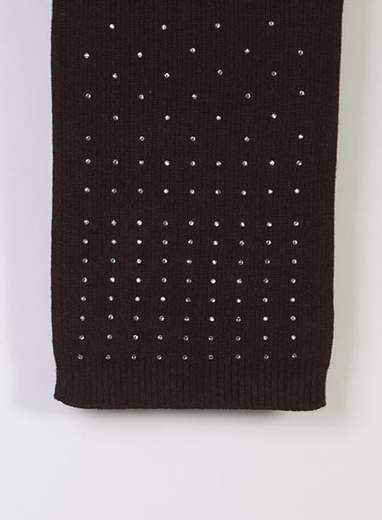 Elegante sciarpa firmata MARELLA in misto lana, arricchita da dettagli in strass e da una raffinata lavorazione a costine. Il bordo alto al fondo conferisce un tocco di stile e struttura, rendendola perfetta per completare qualsiasi outfit invernale con classe.La composizione è 50% lana e 50% poliammide