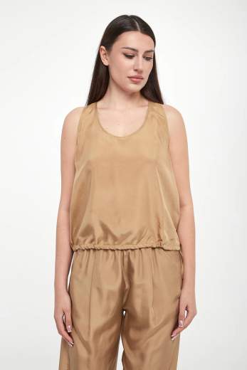 Top in seta habotai.Enjoy summer! Il top smanicato in seta habotai fonde eleganza, allure casual e una nota contemporanea. Abbinalo ai joggers per in city look da indossare ogni giorno.