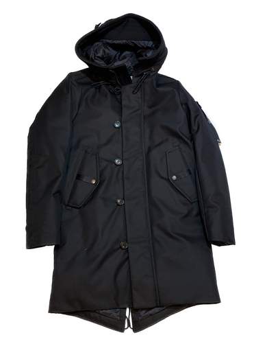DESCRIZIONE:Ampio parka in tessuto ad alta tenacità, tinto filo, brillante nell’aspetto e molto resistente. Full zip centrale nascosta e bottoni con asola. Tasche laterali con patta e coulisse interna, spacco centrale sul retro. Cappuccio con regolatori e tab catarifrangente. Un modello classico reinterpretato secondo lo stile sofisticato e urbano, tipico del marchio. Water repellent e Made in Italy.