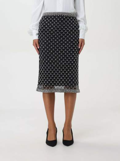 Gonna midi in tulle nero con motivo a rete di micro cristalli luminosi su tutta la superficie, completamente lavorato a telaio. La trasparenza aggiunge un tocco di leggerezza e sensualità, mentre i dettagli ricamati donano un effetto sofisticato e lussuoso. Perfetta per eventi speciali: un'opera d'arte che trasforma ogni outfit in una dichiarazione di stile.
