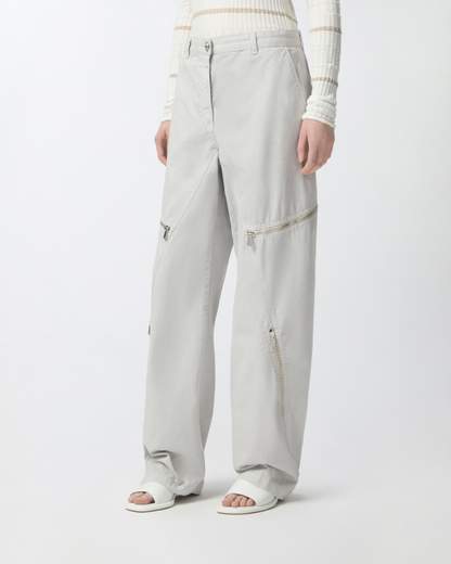 SERE NERE PANTALONEPantaloni a gamba ampia in gabardina 100% cotone personalizzate con zip metalliche a metà e a fondo gamba che aggiungono carattere al tuo stile. I pantaloni larghi sono caratterizzati da vita alta con passanti per cintura e volume rilassato con tasche alla francese sui fianchi e tasche a filetto sul retro.
