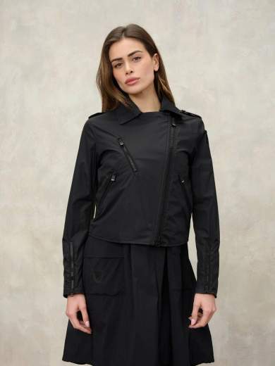 CHIODO NYLON ZAMORA.Chiodo in nylon foderato in tono con collo a doppio revers. Capo per un look chic e disinvolto che vuol risaltare la figura.