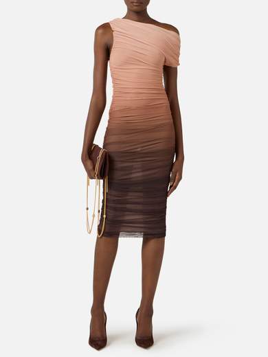 Abito in tulle dégradé,Abito in tulle. Il vestito ha scollo asimmetrico con design monospalla e gonna midi. Si distingue per l'intenso dégradé dalle morbide sfumature, esaltate dai fitti drappeggi su tutta la lunghezza del capo. A completare, un dettaglio con logo in metallo dorato. Vestibilità aderente.