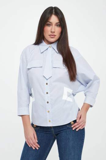 Camicia con maniche a 3/4 bianca con motivo a righe azzurre. Essenziale ed elegante, questa camicia è realizzata in 100% cotone, ideale per garantire freschezza e comfort durante la stagione primaverile. Il colore dona luminosità e raffinatezza al look, mentre la vestibilità slim fit valorizza la silhouette con una linea pulita e femminile.Lo charme inconfondibile dello stile Elisabetta Franchi sboccia ad ogni collezione, con declinazioni originali e innovative crea nuove mise accattivanti e irrinunciabili. In questo speciale capo, modello CAMICIA CA13261E2 , viene estetizzata l'eleganza classica con delle sfumature contemporanee. La donna che veste Elisabetta Franchi è sempre alla ricerca di creatività, fantasie audaci che non siano mai eccessive. Il brand dalla firma Made in Italy risponde bene alle esigenze del suo pubblico femminile proponendo capi dall'ideale moderno ed indipendente per serate speciali o per routine quotidiane dai toni distinti.