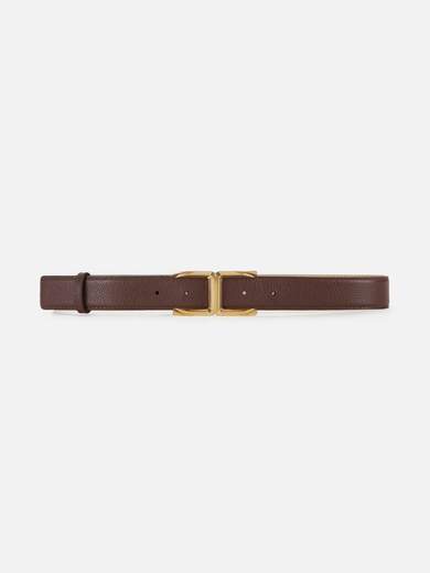Cintura realizzata in pelle dal design leggermente bombato e rifinita con impunture. È impreziosita dalla placca con logo in metallo dorato sul davanti.