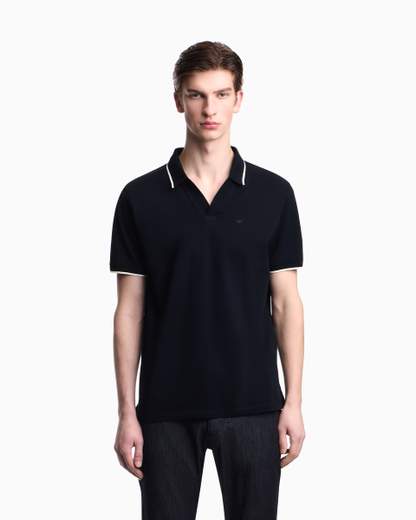 Polo con scollo V in piquet.Polo provvista di apertura a V su scollo, realizzata in piquet di cotone, un tessuto confortevole che offre una vestibilità ottimale e libertà di movimento. Un classico rivisitato in chiave contemporanea, ideale per un look casual ma ricercato.
