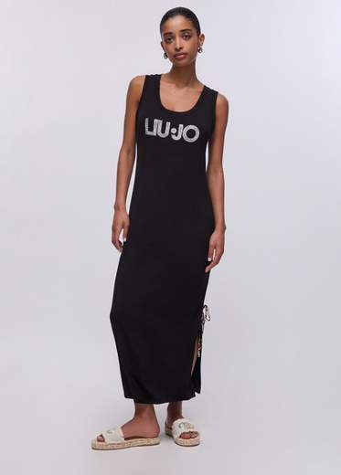 Abito lungo con maxi logo.Abito lungo in jersey di viscosa, Girocollo, Maxi logo, Spacchetto con fiocco animalier.