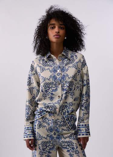 L’eleganza della stampa foulard, in versione daily. questa camicia in twill unisce ritmo grafico e comfort per aggiungere carattere ai look da giorno. Provala in coordinato con i pantaloni ton sur ton o indossala in spezzato su jeans e gonne in denim.