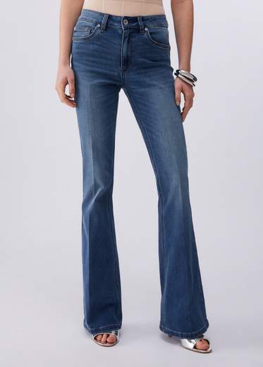 Jeans bootcut a vita alta.Jeans in denim stretch, Lavaggio stonewash, Tagli bottom up che ridefiniscono le forme con eleganza, donando armonia e sostegno senza rinunciare al comfort, Vita alta.