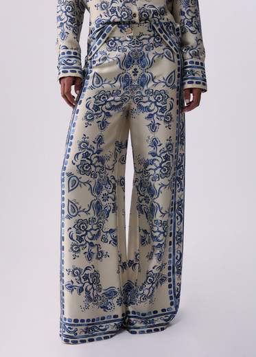 Pantaloni con stampa foulard.Il twill dona fluidità a questi pantaloni ampi, animati da un motivo grafico che firma il look. Abbinali a camicie ton sur ton e sandali sottili per uno styling fresco e contemporaneo.