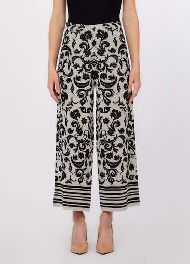 PANTALONI CROPPED IN MAGLIAPantaloni in maglia Lurex dal taglio cropped e wide leg, pensati per chi ama unire comfort e stile contemporaneo. Realizzati in morbido misto viscosa, la stampa floreale dona un tocco femminile e luminoso, trasformando il capo in un vero protagonista degli outfit. La linea ampia e fluida valorizza il movimento, rendendo questi pantaloni ideali da abbinare a top essenziali o maglie leggere per look casual chic e moderni.