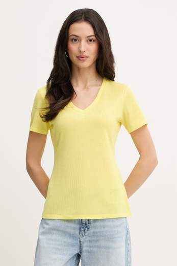 Filati in misto viscosa, Interventi in lurex, Scollo a V, Logo monogram in tono colore.