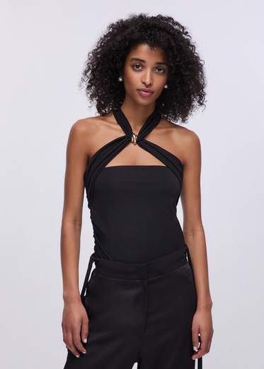Top con incrocio.Top in jersey di viscosa, Taglio incrociato con dettaglio gioiello, Made In Italy.