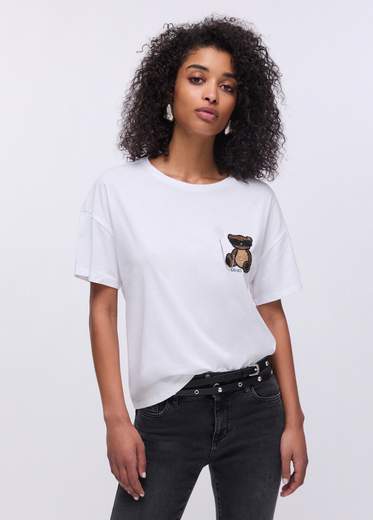 T-shirt con patch.T-shirt in jersey di cotone, Girocollo, Maniche corte, Patch ricamato.