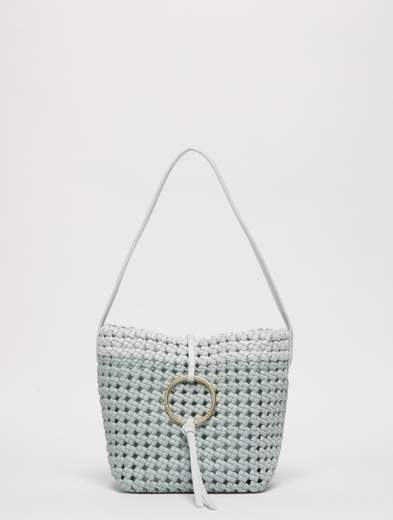 Borsa piccola in tessuto intrecciato.Affronta la bella stagione con la raffinata leggerezza della borsa intrecciata. Compatta, con anelli metallici dorati sul davanti, si abbina alle bluse più romantiche o ai denim preferiti, portando con te tutto l'essenziale.