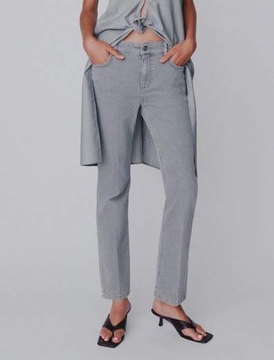 Jeans new flare in denim stretch.Allunga la silhouette con la linea slanciata di questi jeans flare. In morbido cotone stretch, si flettono al movimento e giocano con i trend primaverili, come la piega stirata sulla gamba.