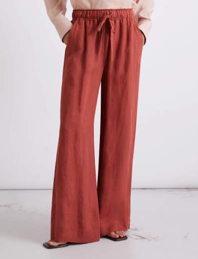 Pantalone in puro lino.Leggero, fluido, rilassato nella costruzione: il pantalone in puro lino è il tuo capo da comfort zone quotidiana. Con elastico e coulisse in vita, per stare sempre comode.