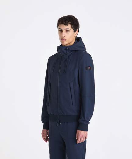PEU574601192031Giacca hybrid con cappuccio.Giacca corta con cappuccio realizzata in tela tecnica di nylon stretch ritorto, caratterizzata da un aspetto opaco e leggermente mosso, ottenuto grazie all’impiego di filati testurizzati. Dotata di cappuccio con tiranti regolabili, chiusura full zip centrale a doppio cursore, tasche laterali, fondo e polsini in maglia. Parte della linea Transeasonal che nasce da un equilibrio tra materiali evoluti, design essenziale e capi pensati per attraversare le stagioni con naturalezza. Un capo dal carattere sportivo reinterpretato con gusto contemporaneo, perfetto per unire comfort e stile.In tela di nylon stretch, Cappuccio con tiranti, Fondo e polsini in maglia.Tessuto principale: 90% Poliammide 10% Elastan Leggi tutto