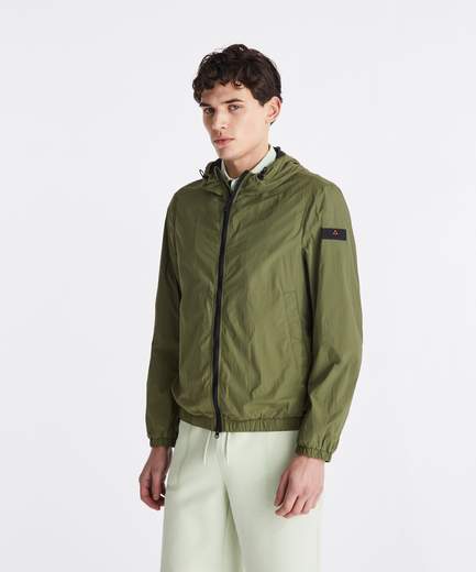 In nylon superleggero, Full zip centrale nera, Cappuccio fisso con coulisse