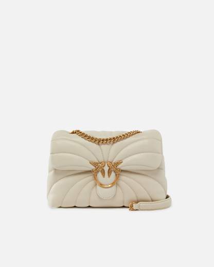 Borsa a tracolla grande Love Bag Puff trapunta farfalla.Borsa a tracolla grande Classic Love Bag Puff realizzata in morbida nappa trapuntata con motivo Butterfly a farfalla. La chiusura della borsa è completata dalla fibbia in metallo, galvanica antique gold, con logo uccellini Love Birds Diamond Cut, mentre l'interno, foderato in tessuto effetto scamosciato, include tasca a parete e tramezza chiusa con zip. La tracolla scorrevole combina la classica catena metallica al pratico spallaccio in nappa, e può essere doppiato per indossare la borsa a spalla.
