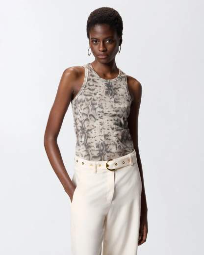 BELFIORE CANOTTA COSTINACanotta da donna realizzata in cotone stretch a costine con stampa pitonata. Ricamo del logo Love Birds sul retro. 96% cotone 4% poliestere
