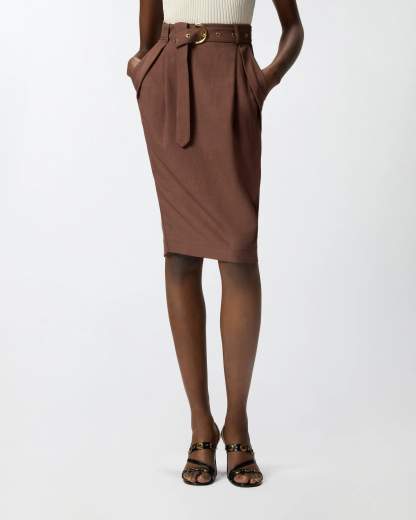EDWENA GONNA FRISOTTINOGonna longuette dalla linea aderente realizzata in un tessuto panama che richiama l'inconfondibile aspetto rustico del lino, per un look elegante e disinvolto, e offre al contempo un'ottima fluidità, anche grazie al lavaggio finale con ammorbidente. Dotato di una comoda chiusura posteriore con zip per facilitare l'indosso, il modello presenta eleganti pieghe frontali che testimoniano la cura per i dettagli tipica di PINKO. A rifinire la gonna, ideale per un un cocktail party o per un appuntamento serale, troviamo lo spacchetto centrale sul retro e la cintura rimovibile in vita impreziosita da fibbia e occhielli con finitura dorata.
