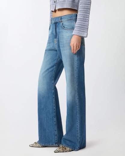 WANDA WIDE LEG MEDIUMJeans cinque tasche a gamba ampia in denim di puro cotone dalla mano morbida caratterizzati da un lavaggio in tono medio con evidenti scoloriture per un accattivante effetto vintage. A personalizzare il design in puro stile PINKO troviamo il logo lettering del brand ricamato sul retrocinta e il logo Love Birds con uccellini ricamati sulla tasca posteriore destra. Contemporanei e versatili, questi jeans diventeranno i protagonisti assoluti dei tuoi outfit quotidiani.