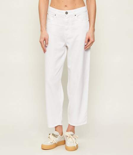 ESTELLE EGG DIRTY BLUE DENIM LEG MEDIUMJeans cinque tasche a vita bassa balloon fit, con gamba arrotondata nella parte superiore e più stretta al fondo. Il modello è realizzato in denim di cotone e lyocell con tono di lavaggio medio e scoloriture per un accattivante aspetto vissuto, ed è rifinito dal fondo gamba trattato a riserva, per un effetto destrutturato. Il lavaggio più scuro del quinto taschino, della salpa e del fondo capo crea un contemporaneo gioco di contrasti in puro stile PINKO, mentre l'iconico logo Love Birds spicca sotto forma di ricamo su una delle tasche posteriori. Indossa questi jeans con la giacca abbinata per un look total denim dallo stile contemporaneo, oppure con la tua T-shirt preferita per un mix casual e disinvolto, perfetto per ogni occasione.