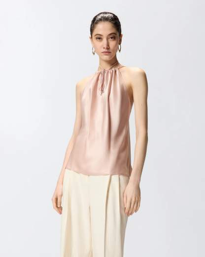 CAROTA TOP SATINTop dalla linea linea morbida e scivolata, caratterizzato da uno scollo all'americana con coulisse regolabile completata da finalini metallici che crea raffinati arricci sul davanti e lascia la parte alta della schiena scoperta. Il modello è realizzato in morbido e lucente satin double face, per un aspetto raffinato e uniforme sia all'esterno sia all'interno, e presenta spalline sottili coordinate alla coulisse da indossare sia a vista sia nascoste. La fluidità di questo capo saprà stupirti per le cerimonie e occasioni speciali, soprattutto in total look con il pantalone abbinato.