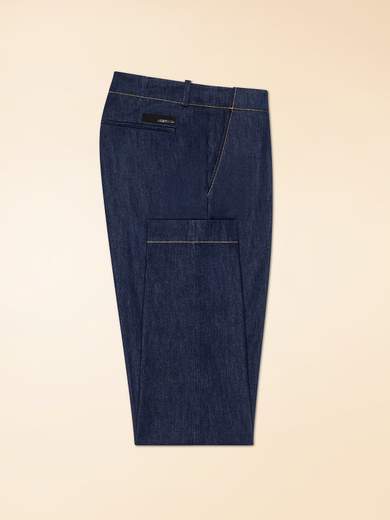 MARINA WEEK END PANTQuesti pantaloni a vita media, caratterizzati da un fit regolare e pensati per accompagnare con eleganza il tempo libero, sono realizzati in denim tecnico elasticizzato che assicura leggerezza e un comfort superiore alla tela tradizionale. La linea leggermente affusolata dona armonia alla silhouette, mantenendo un equilibrio impeccabile tra stile casual e raffinatezza contemporanea. La costruzione sartoriale si rivela nei dettagli: la pregiata abbottonatura in corno celata dalla pattina, le cuciture a vista che definiscono la vita con passanti e le tasche laterali alla francese, essenziali e funzionali. Sul retro, le tasche a filetto sono impeziosite dal logo a microiniezione nero. Versatili e ricchi di carattere, Marina Week End Pant si prestano alla creazione di look ricercati, ispirati al mondo vintage e alle atmosfere workwear, reinterpretati attraverso una lente di moderna eleganza.