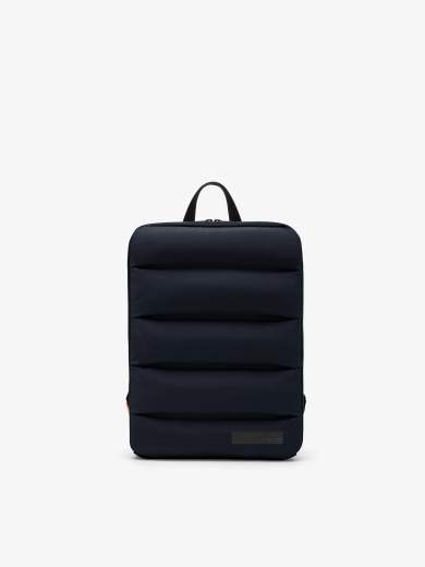 Il design razionale e minimalista dei canali tubici ad alta densità imbottiti e totalmente privi di impunture, distingue questo modello esclusivo da ogni altra borsa. La forma rettangolare e leggermente stondata è studiata per contenere un laptop, protetto dalla fodera in velluto e dalla chiusura esterna a zip spalmata con doppio cursore, mentre l'interno presenta diverse tasche a zip invisibile, impreziosite dal doppio filetto arancione fluo. L'iconico logo a microiniezione nero firma una borsa che può essere portata a mano o in spalla, grazie al manico flessibile e alle bretelle regolabili.